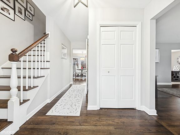 This lovely home sits in a central Naperville location in the coveted Maplebrook II subdivision. The welcoming front porch leads you into this attractive home featuring hardwood floors throughout. Custom built ins in Living room and updated lighting in the dining room create a wonderful space to entertain. Kitchen was remodeled in 2022 with new cabinets , quartzite countertops, backsplash ,exhaust hood and all new appliances. A custom beverage bar station was added with a beverage fridge to complete this eat in kitchen space. The spacious family room has a cozy wood burning gas start fireplace and plenty of natural light for relaxing or entertaining. New Patio doors lead out to a large landscaped , fenced in yard offering ample space for outdoor activities and gatherings. Second floor includes a primary suite with full bath and 3 additional bedrooms and full bath. The finished basement provides additional living space ideal for a rec-room, office space or fitness area. The Maplebrook II subdivision is close to top rated schools, parks, shopping and dining. This move in ready home combines style ,comfort and a prime Naperville location. A bond to Maplebrook II Swiss & Racket club will be conveyed with the home. The Club has pool, tennis and several other amenities. Top ranked dist. 203 schools, walking distance to Maplebrook Elementary and Lincoln Jr. High, 5 mins to Naperville Central HS. See improvement sheet for all recent updates.