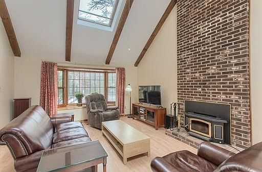 - Fam Dscrp: Ceiling - Cathedral, Ceiling Fan(s), Fireplace, Wood / Coal / Pellet Stove, Flooring - Laminate, Ceiling - Beamed