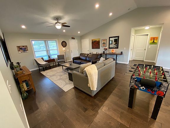 This home has gorgeous views, soaring ceilings, oversized rooms and beautiful hardwood floors. Step out onto a custom deck perfect for entertaining and enjoy the hammock pergola, raised flower bed and landscaped yard! 27x30 Concrete pad for parking, 8x20 storage building, fully encapsulated crawlspace, too much to list! Check it out before it's gone!