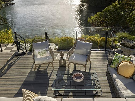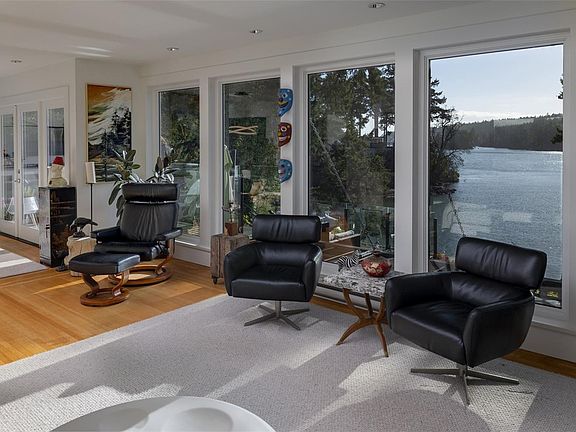 Upscale waterfront oasis! This delightful seaside home has been beautifully renovated & upgraded throughout, offering a bright open-concept design & wonderful views! Located on a private, tree-lined, cul-de-sac, the home offers a peaceful setting with sunny south exposure & access to a sheltered sandy beach. Three bedrooms are located on the main level, & the generous living & dining spaces are highlighted by oversized windows, feature FP & access through double French doors out to the new deck areas. The spacious kitchen includes generous working spaces, upscale appliances, lovely built-ins & custom cabinetry... Downstairs the expansive lower level offers a flexible layout ideal for guests - or as a private self-contained 2 bedroom suite with ocean views & access to a sunny patio. A self-contained studio/office looks out to the ocean, as does the new top-of-the-line seaside sauna. This is a rare & special home with a huge wow factor that must been seen to be truly appreciated!