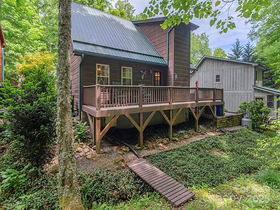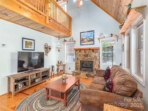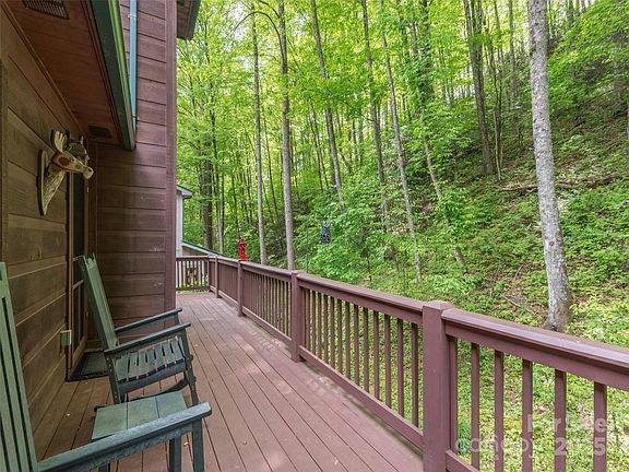 Offered now at $375,000, this inviting log cabin in the highly sought-after Brannon Forest community blends rustic mountain charm with modern updates. The spacious 2BR/2BA open floor plan showcases vaulted ceilings, a cozy gas fireplace, and plenty of natural light—perfect for year-round living or a peaceful mountain getaway. Step outside to the rear deck and relax to the sound of a nearby stream, creating the ideal backdrop for morning coffee or evening gatherings. Recent updates include a newer water heater, brand-new refrigerator and range (2025), plus fresh touches that make this home move-in ready. Brannon Forest is known for its welcoming amenities—clubhouse, tennis/pickleball courts, community garden, pavilion with picnic tables, and even two friendly donkeys, Doc & Daisy. Whether you’re soaking in the natural beauty, joining neighbors for a community event, or enjoying the convenience of being just minutes from Waynesville and Maggie Valley, this low-maintenance cabin offers the very best of mountain living at a fantastic new price.