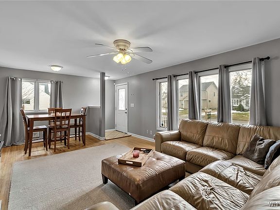 MUST SEE!!! Spacious and beautifully maintained, vinyl-sided ranch in the Town of Tonawanda that is MOVE-IN READY. Step inside to a bright and welcoming kitchen featuring maple cabinetry, attractive countertops, tile flooring, recessed lighting with a charming tray ceiling creating a warm and inviting space. The open layout flows effortlessly into the large living room with charming hardwood floors, allowing natural light to fill the home and with 2 bedrooms and 2 full baths, this home is designed for both functionality and comfort. The primary suite features a tastefully updated stand-up shower with a porcelain tile surround (2023) and newer vanity, while the main bathrm a sleek tile shower surround and flooring. First-floor laundry adds convenience, with additional laundry hookup available in the partially finished basement, offering extra space for a home office, gym, or entertaining. Through the heated breezeway/3-sesaon room is the 2-car attached garage that provides shelter from the Buffalo elements, and the partially fenced backyard is perfect for relaxing or sipping your morning coffee. Recent updates include fresh paint 2025, landscaping & bathrm in 2023, HWT 2016, some windows, a newer shed and much more! Nestled in an incredibly convenient location steps from Niagara Falls Blvd with shopping, dining, and highly-rated schools, this home offers the perfect blend of comfort and style. Sq footage from owner. Offers due Monday, 3/17/2025 at 12:00 PM.