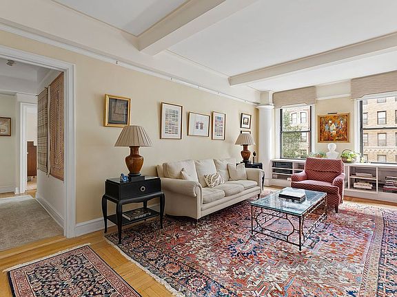 There are some homes that check off all the boxes: A location near Central Park; a meaningful architectural history; a classic yet flexible layout (see alternate plan) that works well for today's big life; large rooms; good light from three exposures; a peaceful/quiet vibe; leafy tree-line views; a grand foyer; a big windowed kitchen with dining bar and extra pantry; a large primary bedroom; a cheerful, dual entry, flexible dining room (bonus bedroom, anyone?); two full baths; a bonus laundry room; good closet space; office space; pet friendly; building courtyard space; live-in super; doorman; easy location; beamed ceilings; hardwood floors; and a comfy, easy-to-live radiance. All of these seem to be the very attributes that take the cake on the prime Upper Westside. Well, if you're keeping score and checking boxes, then your smile should be pretty big about now.