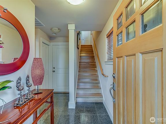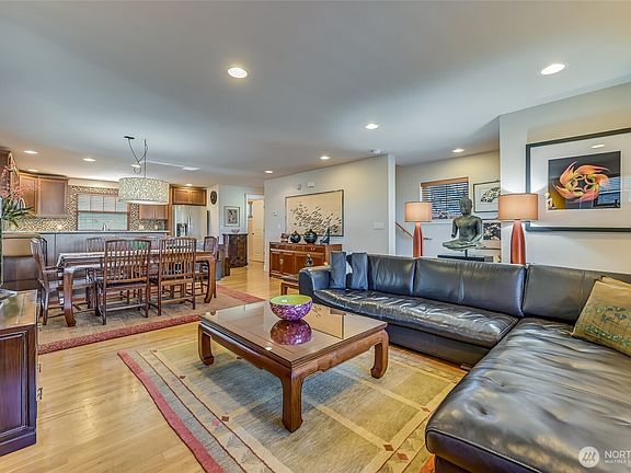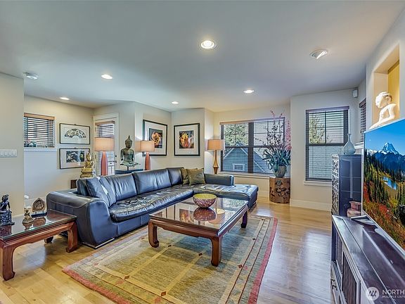 Pristinely Maintained North Queen Anne Home! Spacious 3-bedrooms all en-suite 4-bathroom abode in quiet neighborhood. Crafted Granite tiled entry greets at the front door! Spacious Great Room of living & dining can handle your largest of furniture, plus has a superb mantled/tiled gas fireplace with adjacent veranda. Chef sized & appointed kitchen with upmarket stainless steel appliances. Gleaming polished Oak Hardwood floors found throughout entire 2nd floor/partial 3rd floor & both sets of stairwells. Primary Suite has vaulted ceilings, luxurious 5-piece bathroom, big closet & private deck. Both guest bedrooms each have private bathrooms. Private tranquil/Zen styled backyard perfect for privacy and meditation. 2-car garage, good storage.