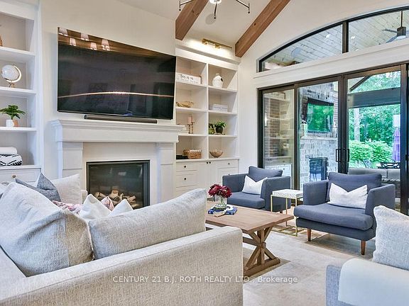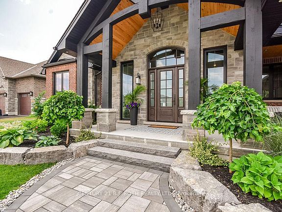 This stunning 6,200 sq. ft. fully finished custom home resides in the prestigious Cameron Estates community, offering 5 bedrooms and 5 bathrooms with true craftsmanship throughout. The main level spans 3,210 sq. ft. with an additional 3,000 sq. ft. finished basement, featuring a custom bar, built-ins, a shiplap feature wall with cabinetry, floating shelves, and a striking 96 Napoleon fireplace. Enjoy radiant in-floor heating in the basement, garage, and tiled areas, plus electric heated floors in all bathrooms. Elegant custom rough-cut Douglas fir post-and-beam entranceway, a high-end window and door package, and a designer brick and stone exterior showcase timeless curb appeal. Inside, custom plumbing, lighting fixtures, and built-ins pair with a $100,000 cabinetry package and $60,000 appliance package. The home is wired with surround sound, a Sonos system, and includes full security. Outdoors, the property is fully landscaped with irrigation, a three-season room with power screens, and a custom pool house. Nestled near Barrie and Orillia, with trails, parks, and amenities nearby, this Cameron Estates home delivers luxury, comfort, and convenience.