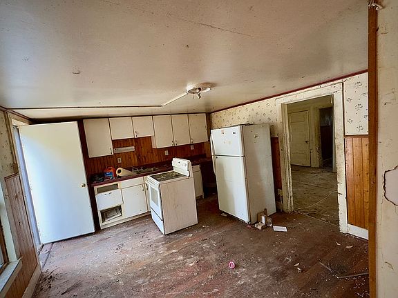 large stone foundation and great bones. spacious kitchen. off street parking and an additional large backyard not pictured. fuel tank in place but one of the two monitor heaters disappeared when the previous tenants moved out.
