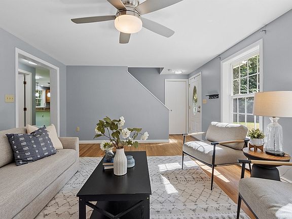 This warm & inviting meticulously maintained Cape nestled on 4.6 private acres in a desirable cul de sac neighborhood seamlessly blends classic elegance w/modern comforts. The thoughtful floor plan features a cabinet packed kitchen w/granite counters, breakfast bar, & stainless appliances opening to a spacious living room w/cozy fireplace, sun drenched dining room & convenient home office/laundry room. The 2nd floor boasts a primary suite w/walk in closet, 3 additional generously sized bedrooms brimming w/character & updated full bath. The unfinished walk/out lower level offers expansion potential as needs change. Entertain w/ease outdoors on the spacious composite deck overlooking tranquil views of the sprawling backyard & abutting woodlands where wildlife abounds. Enjoy handsome hardwood floors, freshly painted interior, & convenient location near Highland Commons, 495, winery, orchards, farm stands, & more!