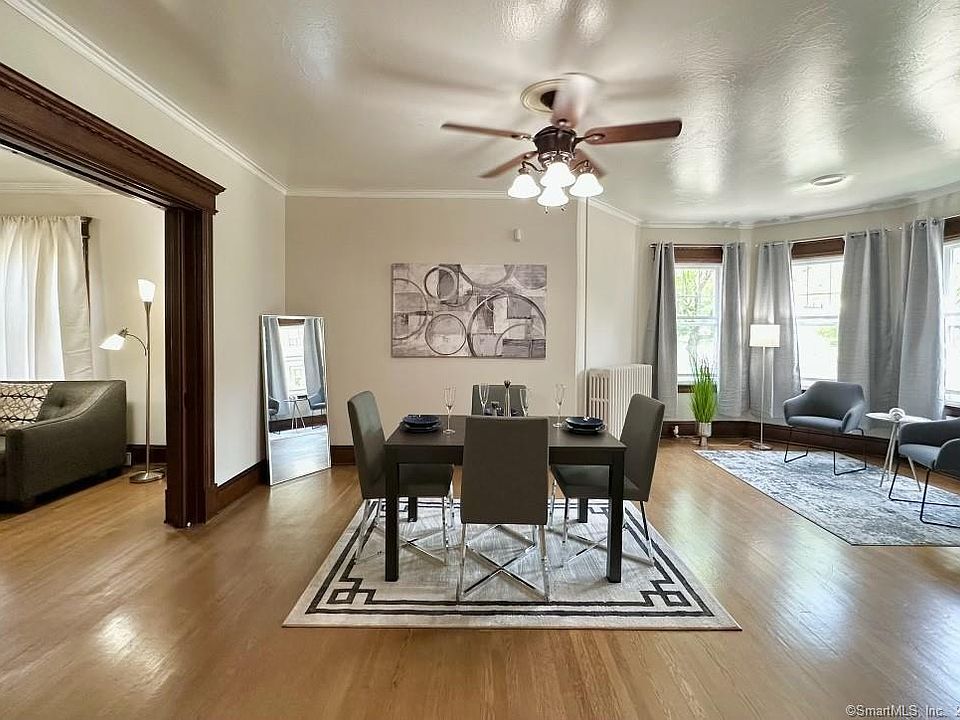Don’t miss this beautifully updated Victorian in Hartford’s desirable West End! Cross the oversized, private front porch with trex decking and mature landscaping, and you enter the parlor with its winding staircase, built-in seating and bookshelves and original wood-burning fireplace. High ceilings, gleaming hardwood floors, exquisite moldings, replacement windows and ceiling fans throughout. The first floor boasts an open floor plan with sitting areas, pocket doors, oversized rooms, an updated kitchen with stainless steel appliances and a powder room. The walk-in pantry, butler pantry and two more closets offer storage galore. The second floor offers four spacious bedrooms, two tiled full bathrooms and an additional closet. Continue to the back staircase with its private entrance up to the finished third floor, and find another bedroom with a walk-in closet, a full bathroom, a large sitting room with built-ins, an office space with a leaded glass window, and more storage space, offering opportunities for an au pair suite, a teen space, or an in-law apartment. From the five spacious bedrooms to the three and a half bathrooms and additional third floor living area, there is space for everyone. The basement features laundry hookups in an additional 1,298 square feet that can be finished. There is a three-car garage, plenty of parking and fenced-in yard. A block from Elizabeth Park. Next door to Noah Webster school. This property will not last.