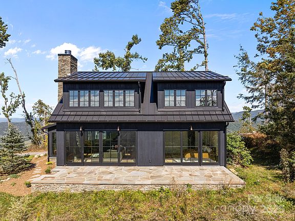 The Accoya wood siding and natural stone–clad porch opens into a sunlit foyer framed by a wraparound stone fireplace that anchors the home in warmth and artistry. From the moment you enter, breathtaking mountain vistas unfold through floor-to-ceiling southern-facing sliding doors and windows, blurring the line between indoors and out. Step onto the expansive flagstone terrace and immerse yourself in the ever-changing colors of the Blue Ridge landscape. Inside, reclaimed white oak barnwood floors with radiant heat flow through the open-concept living, kitchen, and dining areas—bathed in natural light and framed by endless views. Gather by the stacked-stone wood-burning fireplace or craft a meal in the professionally designed deVOL-inspired kitchen, featuring custom cabinetry and built-ins, unlacquered brass fixtures, La Cornue gas range, Carrara marble backsplash, and artfully selected designer lighting. The primary suite on the main level is a sanctuary of serenity with panoramic mountain views and private terrace access. A custom-built armoire, bespoke vanity, Moroccan brass fixtures, and handpicked tile bring refined character to the ensuite bath. The main level also includes a designer powder room, well-appointed laundry, mudroom with built-in storage, custom pantry, an oversized single-car garage with EV charger, and whole house generator. Ascend the hand-tooled staircase to a loft framed by awe-inspiring views from every window. A beautiful guest suite with southern-facing transom windows and a fully customized bath complete the upper level. Set on 3.65 private acres, this residence offers unmatched peace and privacy just 2 miles from the Blue Ridge Parkway and 8 miles from downtown Asheville. Experience elevated mountain living where craftsmanship, comfort, and natural beauty converge—surrounded by views that will take your breath away every single day.