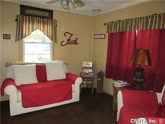 Beautifully maintained 2 bed, 1 bath ranch has tasteful updates throughout. All new kitchen with stainless appliances and sliding glass door onto private patio. New wall to wall carpet throughout living room and bedrooms, all new tile and fixtures in bath (with skylight!) Cozy, economical living in this beautiful home on a large corner lot. NYSEG is $80/month on the budget plan. Call today for a tour!
