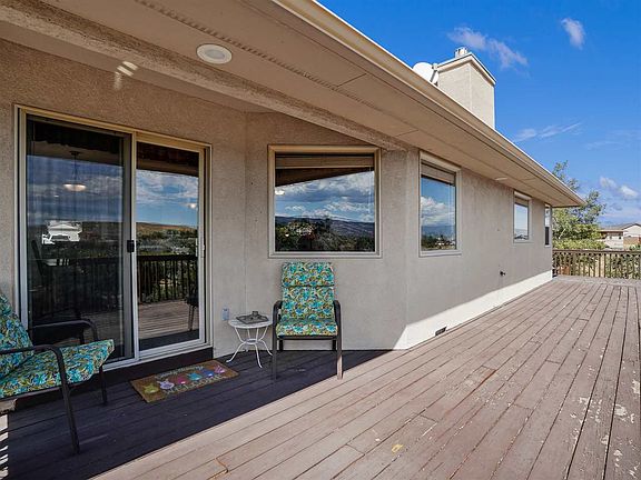 Enjoy a lock and leave lifestyle in a great Ridges location with spectacular views! Perched on the top of the hill, with paved walking paths below, this ranch-style home shows pride of ownership! The roomy kitchen has a wonderful island, and there is a cozy breakfast nook in addition to a dining area for your formal table, so you can enjoy your winter meals inside. The gas fireplace in the living room will keep the chill off! You will certainly want to enjoy all your summer meals on the expansive deck with incredible views over the lush green Ridges landscaping, and of the Colorado National Monument. The sellers have completed recent upgrades including a new Breezeaire evaporative cooler and upducts, new water heater, new range/oven, dishwasher, and sink. Only a 10 minute drive to downtown Grand Junction. Ridges park nearby, with playground and pickle ball courts. What a great location!