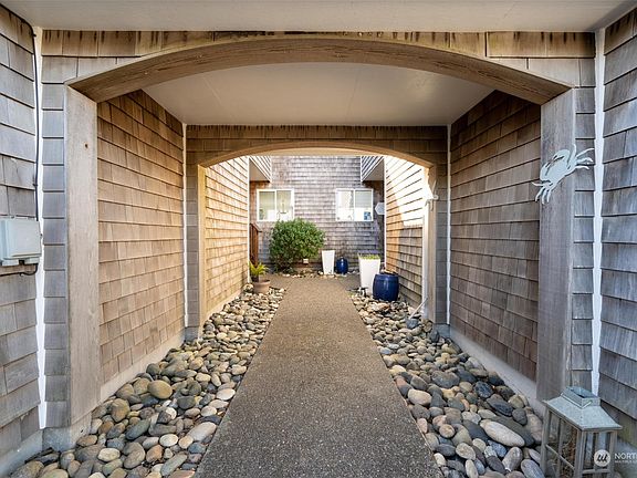 Desirable North Long Beach with OCEAN views, and low maintenance. Golf Course & discovery trail are enticingly close and oversized garage has room for your beach toys. Full or part time living perfect here. Beautifully updated unit with quartz counter tops, bathrooms, appliances, flooring, and fixtures. Spacious primary room has breath taking view the entire length, even the primary bath has views for days. Propane fire place sits perfectly on the main floor for sunset snuggles every night. Out the back door is a thoughtfully placed unique patio for entertaining, cleaning those fresh dug clams, or simply relaxing. Walk the well maintained private trail just off the back patio, strait to the ocean in just minutes.