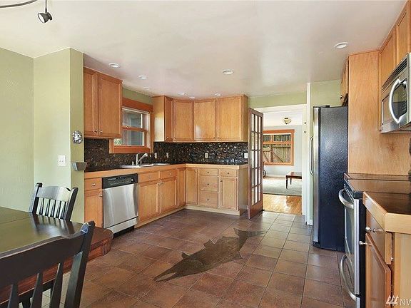 Nestled in the privacy of huge trees on an oversized lot, this charming southside home is certain to impress. Beautifully updated with newer electrical system, lighting, gas furnace and tankless water heater, hardwood floors, front door & Marvin wood clad windows. Updated kitchen features concrete counters with stone backsplash and tile floors with a custom-made metal salmon inlay. Fully fenced with partition for dogs, plus gated off-street parking for trailer. Across street from City trails.