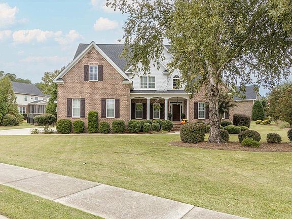 Beautiful 4 bedroom, 3.5 bath, 2 story brick featuring timeless design and modern luxury. The welcoming 2 story foyer opens to a formal dining room and a versatile living room or a study. The spacious great room showcases a double sided fireplace shared with the breakfast or keeping room. The gourmet kitchen is a chef's dream with quartz countertops, stainless steel farmhouse sink, Kitchen Aid appliances, commercial style gas range with pot filler, wine cooler, and microwave drawer, plus custom ceiling height cabinetry. Gorgeous oak floors flow throughout the main level including the staircase. The main level primary suite offers a spa like bath with dual vanities. large walk in shower, and an expansive closet. Upstairs features additional bedrooms, baths, bonus room, and new carpeting throughout. Outdoor living is a delight with covered front and back porches. Enjoy the Riverwood lifestyle - community pool, walking trails, playground, and convenient access to local shops, dining, and school, perfect for golf cart living.