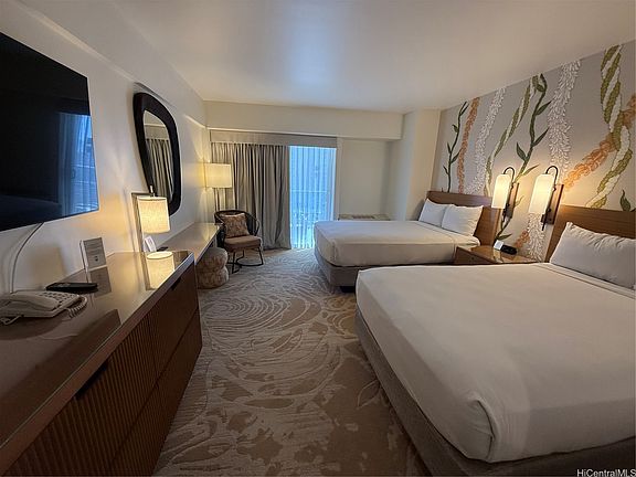 This beautiful Ala Moana Condo Hotel studio was recently professionally renovated in island style decor. It features two double-size beds and has tranquil ocean views that invite relaxation. It is located in the highly desired Waikiki Tower and has direct access to the famous Ala Moana Shopping Center, minutes by foot to the beach, fabulous dining, and mass transit lines. Amenities include an updated pool, spa facilities, state-of-the-art fitness center, a hair salon, and a penthouse steak restaurant with gorgeous views. You can be a guest in your own hotel room as well as participate in the turn-key vacation rental market program. E Komo Mai: Welcome.
