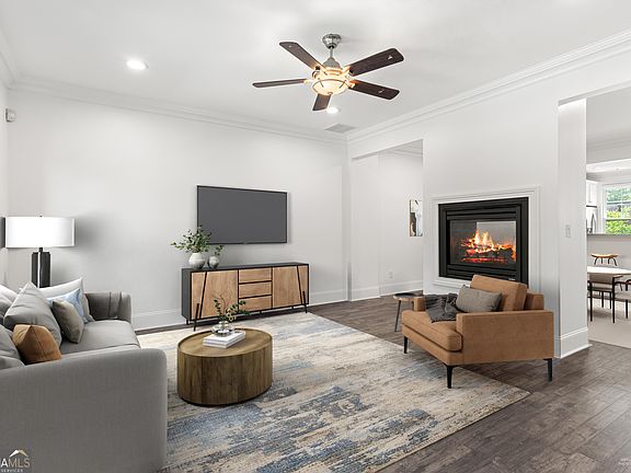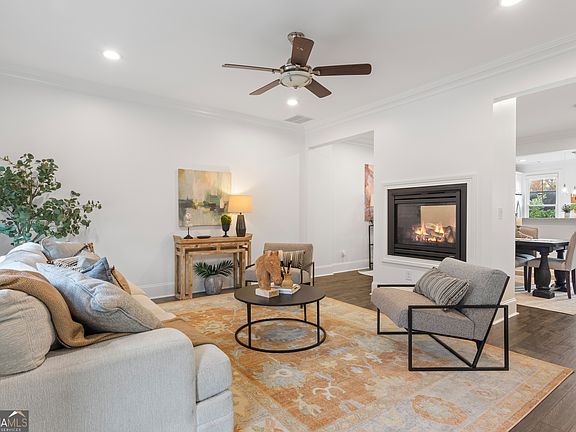 Walkable lifestyle in the heart of downtown Historic Roswell! Gorgeous brownstone just steps off Canton Street in gated Providence. Move-in ready with fresh paint, durable flooring and an easy-living layout. Main level features an open floor plan that allows light fill the entire space. Family room is divided from the dining space by a two-sided fireplace. Kitchen features a center island, gas range, new backsplash, granite counters, a pantry, and plenty of cabinet storage. Kitchen is open to the dining space and to the rear open-air deck, an ideal outdoor sitting space or a place for an herb garden. Upstairs you'll find a spacious primary suite with large, bright windows, a huge walk-in closet, an additional walk-in closet and a large bath with double vanity, soaking tub and walk-in shower. The second bedroom is also suite style with a walk-in closet, and bathroom with a tub, shower and a vanity with plenty of storage space. Laundry room and linen closet is nicely situated between the bedrooms for convenience. The lowest level features an oversized space with a built-in ventless fireplace that could be used as a bedroom, a theater room or a home gym. Large door and windows give a view to the private courtyard space that provides both covered space for sitting and sunny space for a garden. Full bath and space for a walk-up bar complete the lower level. One-car garage provides secure parking with additional parking available in the driveway and designated parking spaces within the gated complex. The community provides you an outdoor pavilion with a stone fireplace, a dog park, and the feeling of being tucked away in a secret corner. While you will love this home, you will truly love the walkable access and lifestyle you'll gain living here. Literal steps from Canton Street means you can join the party when you want, and walk home to peace in minutes. You will love exploring the restaurants and shops. You will love the walkable lifestyle, only a short ways to the River and Riverwalk or to the Roswell Area Park. You will love your neighbors who are friendly, welcoming and who appreciate how lucky they are to live this life. You will truly love living here. These homes are rarely on the market - don't miss your chance, book your showing today.