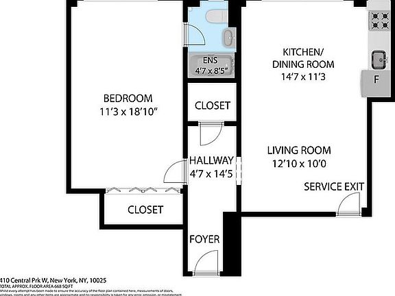 Welcome to Apartment 3C, a bright and oversized one-bedroom home just steps from Central Park — with beamed ceilings and beautiful double-parquet hardwood floors -- a truly exceptional space. This charming pre-war residence offers a gracious layout and rare value on the Upper West Side, with super low maintenance fees and park views right outside your window. The living room and bedroom boast high ceilings and warm natural light, creating a welcoming atmosphere throughout. The king-size bedroom is massive — comfortably fitting a home office setup, dressers, and a king bed, with room to spare. There is ample closet space, including a huge walk-in closet off the bedroom. The kitchen is fully functional and ready for your personal touch — dishwasher hookup is already in place, and washer/dryer installations are permitted by the building. The windowed bathroom features original details. The building features full-service 24-hour doormen, a live-in super, gym, laundry room, bike room, and storage lockers. The building is pet-friendly and allows pied-a-terres purchase. Up to 80% financing is allowed. 410 Central Park West is located directly across from Central Park. Enjoy The Pool, North Woods, jogging paths, and seasonal beauty year-round. Just 2 short blocks from the B/C trains, minutes to the 1/2/3 lines, and the M10 bus stops within steps of the building. Close to Whole Foods, Trader Joe’s, Chipotle, Bareburger, HomeGoods, TJ Maxx, Target, and more. Whether you're looking for classic pre-war character, unbeatable location, or the comfort of a spacious retreat with Central Park as your front yard, Apartment 3C at 410 Central Park West delivers it all — at a smart price with low monthly costs.