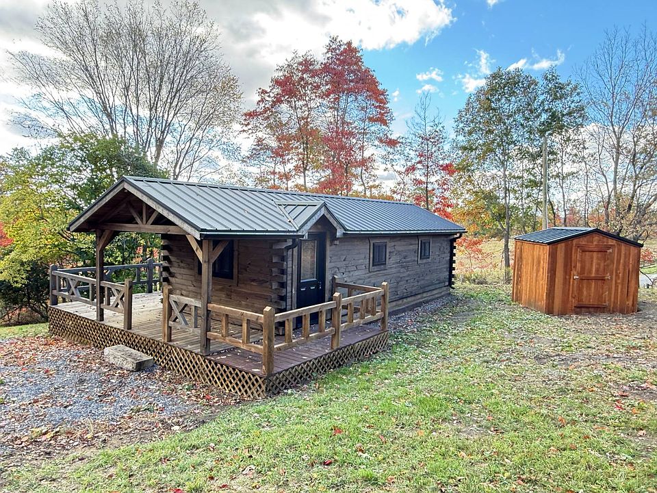 This new log cabin offers a clean, comfortable retreat that is perfect for a weekend getaway or family escape. The cabin features a warm wood interior, a small kitchenette, and cozy living space that feels both rustic and fresh. Step outside onto the inviting decks, ideal for relaxing or entertaining, and take in the peaceful surroundings. A new gravel driveway leads the way to the cabin, which also includes a handy storage shed and a fire pit area for evenings under the stars. The property offers a pleasant mix of open and wooded ground, providing both privacy and room to roam. Whether you're looking for a quiet getaway or a great little deer camp, this charming log cabin is ready to enjoy. The cabin has the major utilities but will require some additions such as heat source and hot water heater. Reach out to the listing agent for additional details or to schedule your personal tour.