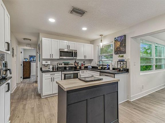 Absolutely move-in ready! Everything is new or less than three years old. Roof 2025, engineered hardwood floors 2025, front door 2025, windows in family room 2025, AC, water heater, extra insulation, appliances, kitchen and bath 2022. There's an outdoor shower and a small dipping pool for relaxing and cooling off in your private fenced-in backyard. There's also a screened-in back porch off the Florida room, currently being used as an office. This room could be used as a dining room, family room or an extra bedroom for guests. This home is bright and sunny with all updated windows. Garage is oversized. Landscaping is mature and on an irrigation system. This is the perfect starter home with zero projects. Close to shopping, Largo Rec Center, Largo Park and Library, and only 15 minutes to Sand Key beach.