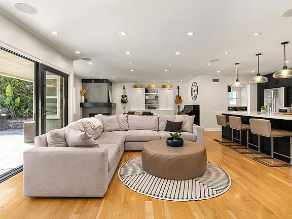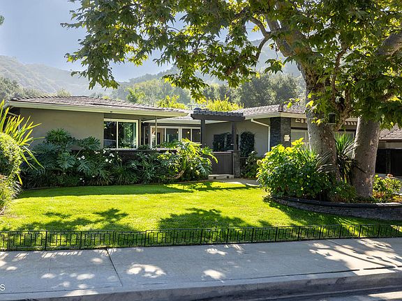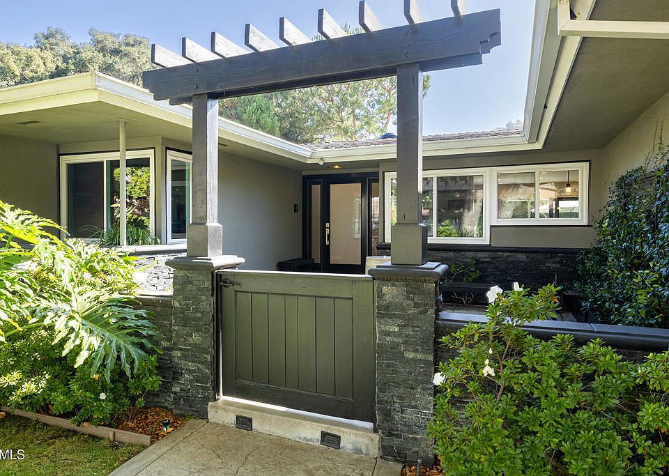 This Glenoaks Canyon Mid-Century Ranch in Northeast Glendale is the perfect retreat just minutes from the city. A walled courtyard entry welcomes you with a tranquil fountain, shaded by a majestic Sycamore tree. Glass entry doors open to an ideal layout featuring a spacious great room concept and a fully renovated chef's kitchen with an oversized island, built-in breakfast nook with bench seating and storage, and an additional beverage station. Large expanses of glass frame the surrounding landscape, bringing the outdoors in while providing a deep sense of privacy and tranquility. Hardwood floors flow through the entry and great room, connecting the kitchen, living room, and dining area accented by a corner fireplace. A large slider opens to a covered patio and beautifully landscaped backyard. A separate laundry area with additional storage and a utility sink offers direct access to the attached two-car garage. The impressive primary suite includes a luxurious spa-like bath with heated floors, a large multi-head steam shower, multiple closets, and French doors leading to a stone patio with a covered trellis. Two additional bedrooms with custom closets share a remodeled hall bath. The inviting backyard includes multiple patios, stone planters, and a grassy lawn with fruit trees, herbs, and vegetables, all completely enclosed by mature hedges providing exceptional privacy. Bonus features include a whole-house generator, newer tankless hot water heater, built-in garage storage, EV car charger, whole-house water filter, upgraded electrical panel, smart thermostat, newer windows, newer appliances, outdoor lighting, and an updated sprinkler system with landscaping enhancements. Located just three blocks from Glenoaks Park and minutes to Scholl Canyon Golf Course and Ball Field, Glenoaks Elementary, hiking trails and with easy access to the 134 and 2 freeways for convenient commutes in all directions. This is an incredible opportunity to enjoy a tastefully updated home surrounded by the beauty and exceptional neighborhood of Glenoaks Canyon.