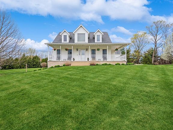 Welcome to this beautifully maintained Cape Cod home that truly has it all! This home sits on 1.6 acres at the end of a cul-de-sac in the Valley Run subdivision in Washington Township. The wrap around, covered front porch, the back deck, the 32x16 ft. inground pool and the beautifully landscaped yard are all perfect, peaceful places to relax and enjoy the outdoors. Step inside to a main level that features hardwood floors, tons of natural light, a spacious entry, a cozy living room with a gas fireplace, dining room, kitchen and primary bedroom with walk-in closet and a full bath with double sinks, extra storage, a built-in makeup vanity and jetted tub. The kitchen has granite countertops, lots of cabinet space, SS appliances and a sliding door that leads to the back deck. The main level laundry and 1/2 bath are conveniently located off the kitchen, near the side door and the 3-car finished, heated and airconditioned garage. The main level has been freshly painted. The upstairs has two additional bedrooms, each with two large walk-in closets plus bonus space in the dormers. Upper level has new carpet. The bonus room above the 3-car garage is equipped with 4 built in speakers wired for surround sound. The daylight basement is partially finished and is currently set up as related living with an open concept living room with a pellet stove, a sleeping area and a kitchenette. Kitchenette has SS appliances, a sink and granite countertops. This area would also make a great rec room with a 2nd kitchen/bar area. The possibilities are endless. There is also a full bath. The unfinished portion of the basement has laundry hookups and an abundance of storage space with built-in heavy-duty shelving. Generously sized rooms throughout the home provide plenty of space for your everyday needs and is perfect for entertaining! This home has dual zoned heating and cooling. Conveniently located just minutes from downtown Valparaiso, close to schools, entertainment and major highways.
