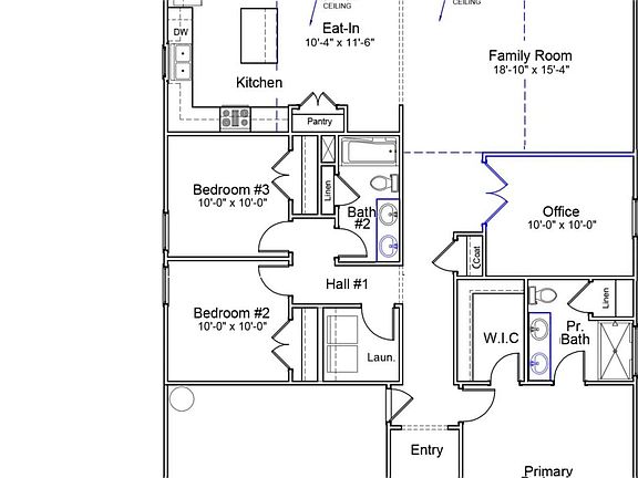 As you approach this home, the inviting front porch and warm colors create a welcoming entry. Upon entering the wide foyer, you will discover the spacious primary suite, which features an expansive walk-in closet, a five-foot shower, and quartz countertops on the dual vanity. The secondary bedrooms are equipped with generous closets and share a hall bathroom. All bedrooms are conveniently located near the walk-in laundry room, which provides additional storage with its upper cabinetry. At the end of the foyer, you will find French doors that lead to an office, perfect for working from home or serving as a playroom. The upgraded kitchen is a delight for entertaining, boasting granite countertops, shaker-style cabinetry, and stainless-steel gas appliances. It opens up to a spacious great room, ideal for gathering during movie nights. The open concept living areas allow for plenty of natural light and showcase views of the covered porch and spacious half-acre backyard. Come see this beautiful home today in Dove Hollow!