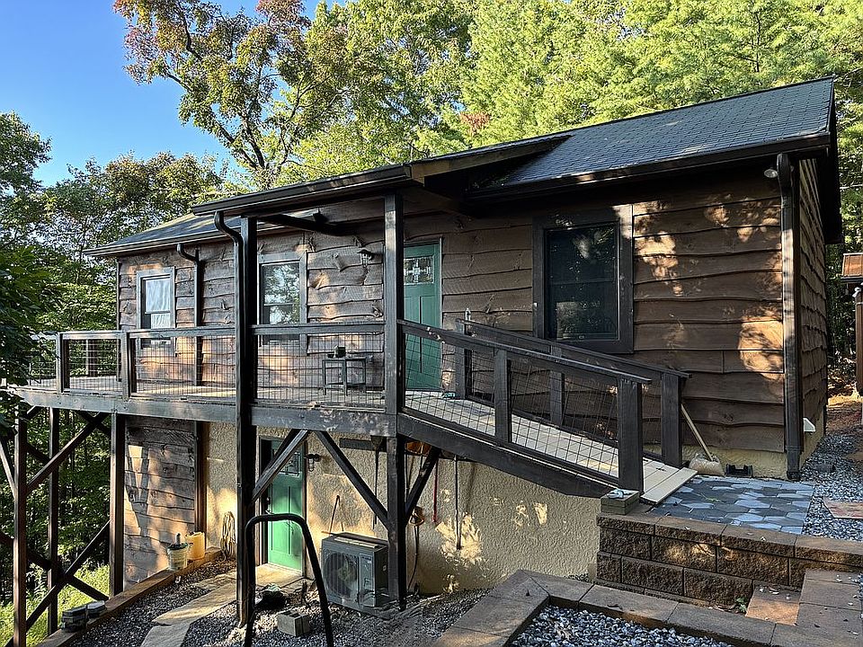 Enjoy the serenity of the outdoors with this quiet cozy mountain getaway in the private gated Buck Mountain community, tucked in the tranquil Blue Ridge Mountains. Perfect for those who love nature, hiking trails, ATV trails, fishing, waterfalls, and cool streams to sit in on hot days. This cabin offers a peaceful escape in the heart of nature. The location offers an ideal blend of accessibility and seclusion with plenty of neighborhood activities. This is a move-in-ready completely refurbished cabin. The main floor offers an open great room that seamlessly blends with the kitchen and living area and entrance to the expansive deck. A large comfortable master bedroom and bath are found on the main floor as well. Walking down the beautiful wooden spiral staircase leads to a spacious open living area with a separate entrance and a wonderful private second bedroom, a full bath and laundry facility. Great area for guests or movie or game nights.