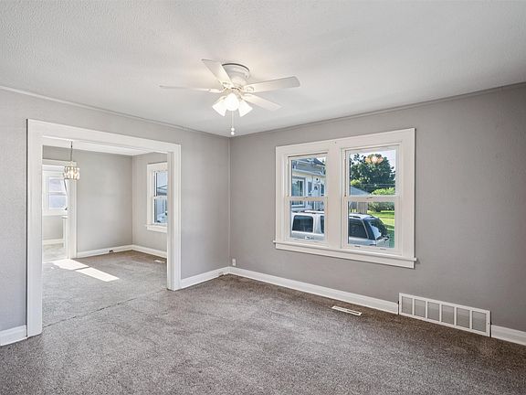 Welcome to this delightful 2 bedroom, 1 bath home offering 816 square feet of comfortable living space. Inside, you’ll find a living room, dining room and a bright kitchen with classic white shaker cabinets. Step outside to enjoy the HUGE concrete patio! The unfinished basement offers ample storage and potential for future customization. Whether you're a first-time buyer, downsizing, or looking for an investment, this home is full of charm and opportunity!