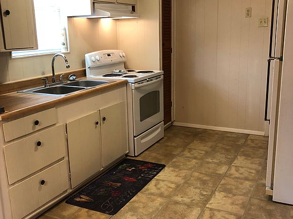 Wood floors. Kitchen has stove and possibly refrigerator if needed. Central air & heat. Corner lot has big yard totally fenced. Backyard shed.