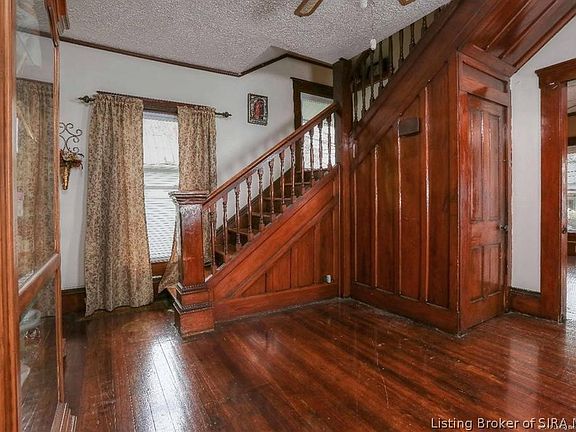 LOCATION is everything! IMMEDIATE POSSESSION! Beautiful downtown Corydon home within walking distance to everything...boutique shops, pharmacy, restaurant, farmer's market, library, downtown parks, Large covered front porch for those evenings in the swing, fenced back yard, private off street parking & 2 car garage w/additional parking area is unique for a downtown home. This 5 bedroom, 2 bath home has original hardwood floors and staircase that add to the charm of this large home, large living room, spacious kitchen has an abundance of counter space w/large pantry, main floor laundry. All appliances remain with the home. Zoned res/comm. This home won’t last long. Seller is selling as is. Sq ft & rm sz approx.