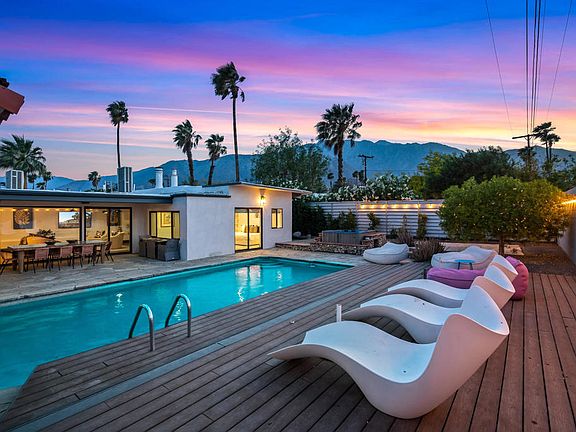 Just waiting for you is the ultimate Palm Springs retreat nestled in the much sought-after Racquet Club Estates. This newly revitalized Post and Beam masterpiece, originally built in 1959, blends iconic midcentury modern design with contemporary luxury. The home has undergone extensive renovations, transforming it into a modern sanctuary. Boasting four bedrooms and three bathrooms, including two lavish primary ensuites, this residence offers the perfect blend of style and comfort. The refreshed interiors feature updated designer lighting and expansive energy efficient windows, enhanced by updated electrical systems, state-of-the-art HVAC systems, and newer drywall and paint creating a residence that is move in ready. The open kitchen, the heart of this home, offers ample storage and counter space, seamlessly connecting to the living and dining areas creating the ideal flow for both everyday living and hosting. Step outside to the ultimate entertaining haven--a chic outdoor living pavilion complete with a fireplace, sleek barbecue, and large bar. Host unforgettable gatherings or just unwind under the desert sky, taking in breathtaking mountain views by the sparkling tiled pool or in the jetted spa. Stay active on the sprawling lawn perfect for croquet, bocce ball, or yoga. With a covered patio and raised sun deck, the outdoor possibilities are endless. This isn't just a home--it's a lifestyle! Whether you're seeking a sophisticated full-time residence, a chic weekend retreat, or a lucrative rental investment, this turnkey furnished property has it all. Don't miss this chance to claim your dream Palm Springs home--act swiftly and start living the lifestyle you've always envisioned!