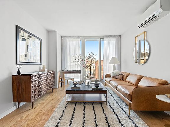 Graced with sun-splashed interiors and private outdoor space, this stylish 1-bedroom, 1-bathroom home at The Fenimore offers a modern city lifestyle surrounded by classic Brooklyn charm. Features include lovely white oak floors, recessed lighting, oversized windows, an in-home washer/dryer, and a private balcony for small alfresco meals, entertaining, urban gardening, and more. A welcoming foyer with a deep coat closet flows into an open-concept living room, dining room, and kitchen saturated with natural light. The living area leads out onto the balcony, while the corner kitchen is adorned with gleaming Caesarstone countertops and backsplash, custom two-tone cabinets, and a suite of Samsung, GE, and Blomberg appliances. The bedroom has a huge closet and easy access to a full bathroom with matte black Fine fixtures and a deep tub with a Delta shower. The Fenimore is a chic boutique condominium nestled in the desirable Prospect Lefferts Gardens neighborhood. Composed of several contiguous buildings with redbrick facades and wood accents, The Fenimore has several amenities that include a virtual doorman system, a secure package area, and a common rooftop deck with picturesque neighborhood views. The building is moments from trendy restaurants, bars, cafes, and shops like Brooklyn Artisan Bakehouse, The Rogers Garden, Aunts et Uncles, Zanmi, and Camillo. It is close to Prospect Park, the Prospect Park Zoo, and Brooklyn Botanic Garden, and accessible subway lines include the 2, 5, B, Q, and S. Pets are welcome.