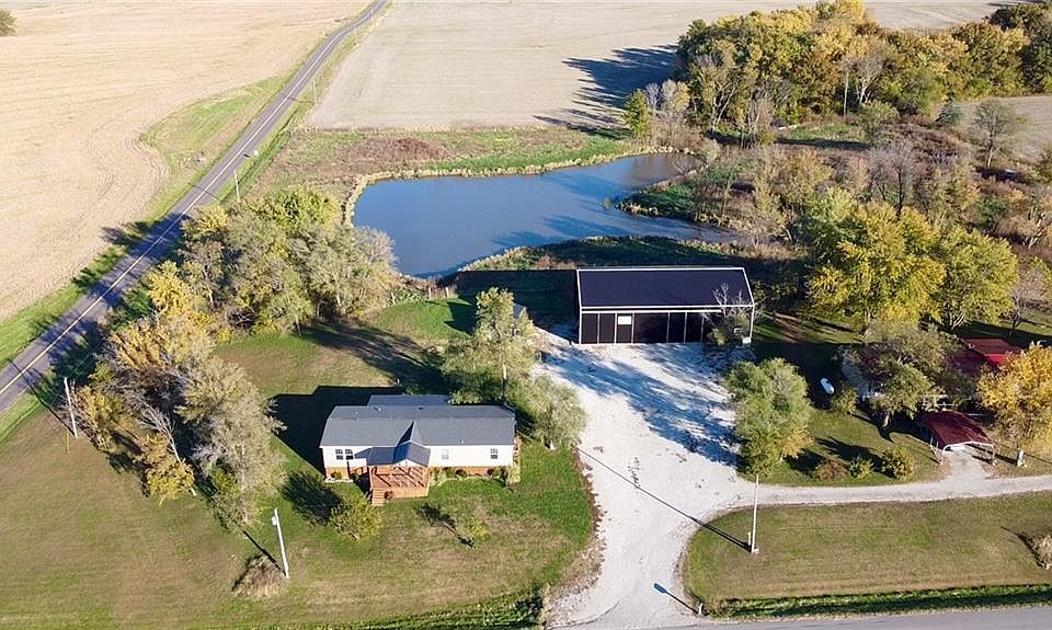 Experience the perfect blend of comfort and country living with this newer 1,728 sq ft ranch-style home, built in 2017 and nestled on 8 scenic acres. This 5-bedroom, 2-bath home features a spacious kitchen complete with stainless steel appliances, granite countertops, and a walk-in pantry. Relax on the covered front or back porch and soak in the peaceful views. Outdoors, you'll find a massive 50' x 80' machine shed with 18' sidewalls, two 16' x 16' doors, a concrete floor, and electricity—ideal for equipment, hobbies, or storage. The property also includes perimeter fencing and cross-fencing, a frost-proof waterer, and a large stocked pond, making it livestock-ready and recreationally appealing. Whether you're looking for a hobby farm, homestead, or simply room to breathe—this property checks all the boxes!