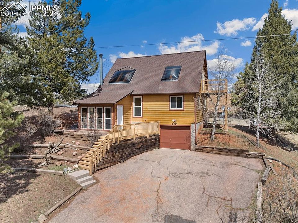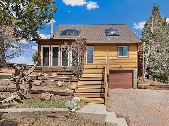 ***See the Video of this home at the Virtual Tour link*** Is it time to move to the mountains? Well, here is your opportunity. This cabin-style home is perfect. Near town, yet out of the way. We are talking walking distance maybe 10 minutes to the center of town. Incredible views of pikes peak out the windows, deck, and skylights in the master bedroom. I mean....you cannot get away from the view if you want to. You have to look at it every single day, all day! Come get it while it lasts.