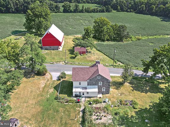 OLD TIME MEMORIES, This well cared for 1801 Stone farmhouse on 64+ acres was occupied by three generations and is now available for a new owner to make new memories. This home features three bedrooms, 1 full bath, extra-large eat-in kitchen with upgraded countertops, indoor first floor porch with laundry hook-ups, and open-air balcony off main bedroom. This home will surprise you once you are inside with the many updates over the years. 36x60 Bank barn with upgraded metal roof and metal siding features a few stalls for your horses, 36x26 machine shed, and additional shed with electric and built-in wall a/c unit to upgrade and use for your hobbies and a well-cared for spring house. Situated on two sides of the road. Currently being farmed by local farmer with corn and soybeans as alternating crops. Crops reserved. A must-see farm to be fully appreciated! Additional 10 acres available for purchase for $169,000. (MLS# PAAD2006498)