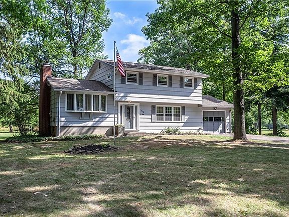 Buy this awesome property now! Situated in a lovely country setting, and on 3/14 of an acre that backs up to woods and fields. You will find this split level/colonial home in a sought out after area. Formal living and dining room, living room with stone fireplace, large kitchen, solid surface counters with beautiful bay/garden window overlooking the huge yard, patio, above ground pool, shed and huge two car plus outbuilding/barn/shop. Another room on the first floor with wood burning stove...that will heat the whole house! Tear off roof in 2009, newer replacement windows and new flooring 2016, new carpet 2016 and new hot water tank 2017! Make an appointment today!
