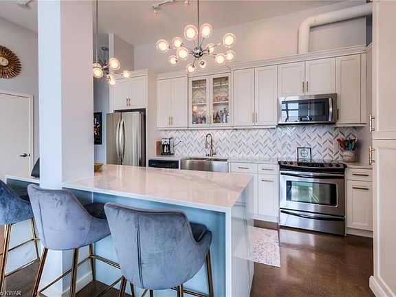 This 1135 square foot condo home has 2 bedrooms and 2.0 bathrooms. This home is located at 410 King St W #604, Kitchener, ON N2G 1C3.