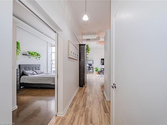 Welcome to Unit 609 at The Kaufman Lofts, a beautiful penthouse condominium with a central location. Set within a historic facade of exposed concrete and brick, this spacious loft offers an ideal blend of industrial charm and modern sophistication. Inside, you'll find a generous and 976 square foot floor plan featuring 11-foot ceilings, two bedrooms, two bathrooms, in-suite laundry, and an expansive 19’ x 19’ private terrace — perfect for relaxing or entertaining. The open-concept living space includes an eat-in kitchen with modern finishes that overlooks the bright living area and terrace. Floor-to-ceiling windows flood the space with natural light, creating an airy and inviting atmosphere. The primary suite offers a spacious walk-in closet and a luxurious 4-piece ensuite bathroom. The versatile second bedroom easily accommodates a queen or king bed and also works beautifully as a home office. Rare for downtown apartments, this unit offers two parking spaces and has the added convenience of a storage locker. Located just minutes from Victoria Park, restaurants, the Google offices, and the University of Waterloo and Wilfrid Laurier graduate campuses, this location is ideal for professionals and academics. Looking to the future, you'll be directly across from Waterloo Region’s upcoming transit hub, offering seamless connections to GO Transit, VIA Rail, and the ION Light Rail, linking the Waterloo-Toronto Innovation Corridor with two-way, all-day service.