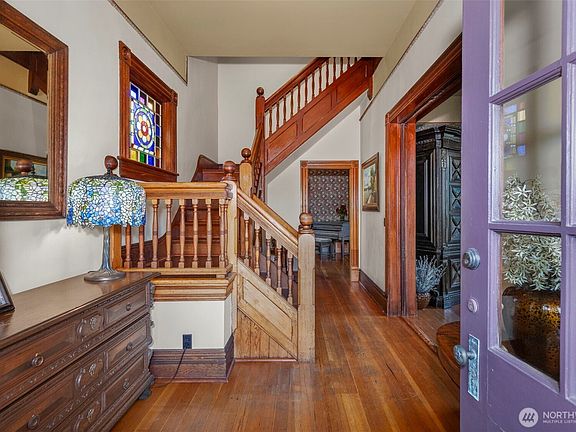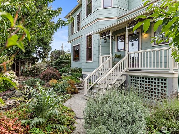 A timeless 1889 Victorian in excellent condition, perfectly placed between Chetzemoka Park and Uptown-walkable to markets, cafés, and the nearby waterfront. High ceilings, restored millwork, and a chef’s kitchen make daily living effortless. The generous primary suite enjoys water views toward Admiralty Inlet, while the finished top floor flexes as studio space, or guest quarters. A jewel-box library adds charm. A detached 780sf ADU offers guest/rental potential, while a lovely detached studio adds to the functionality of the space. Outdoors, advanced Hügelkultur beds blend seamlessly with imported stone patios, boulders, fruit trees, and towering evergreens—creating a low-maintenance, sustainable landscape as inviting as it is beautiful.
