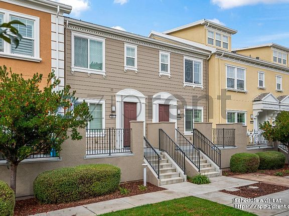 Welcome to 410 Longden Avenue an exquisite San Mateo townhome that perfectly blends elegance, comfort, and convenience. Nestled within a charming, well-maintained community, this residence greets you with beautifully landscaped grounds and a vibrant tiled fountain at the entrance. Meandering green pathways lined with manicured hedges create a serene atmosphere, ideal for peaceful strolls and quiet moments outdoors. The inviting facade showcases modern architectural details and a welcoming front porch that opens to a bright, thoughtfully designed interior.