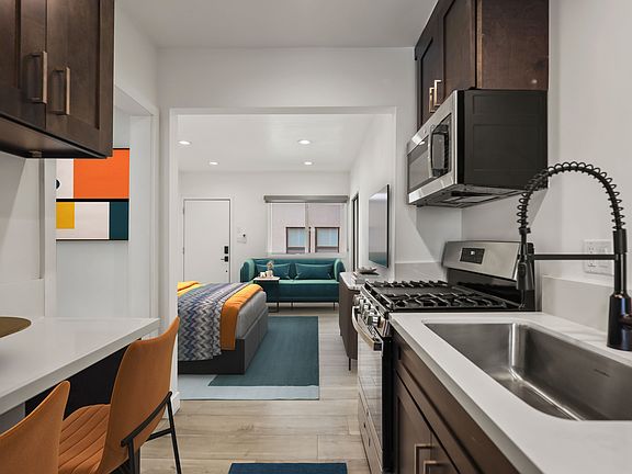 Inspired by midcentury Modernism architecture, these newly renovated rental homes are just minutes to the diverse Koreatown, the prestigious University of Southern California (USC), hip Echo Park and Silverlake, and thriving Downtown Los Angeles. 410 Lucas Avenue, located in the Westlake neighborhood of Los Angeles adjacent to the Historic Filipinotown, features a six-unit, two-story low-rise building with enhanced modern architecture and a gray cement shade base and accents of earth tone colors. Carefully restored and designed by a renowned LA designer, these late 1950s modern luxury rental homes feature keyless entry door locks to spacious one and two-bedroom floor plans with newly renovated kitchen and bathrooms. The kitchen boasts sparkling white stone quartz countertops with brand new self-closing cabinetry and high-end stainless-steel refrigerators with matching gas cooktop with oven and microwave. iRing doorbells with a smart home video security camera are also included. There's a community washer and dryer on site. Bathrooms feature porcelain tiled bath tubs and glass shower doors. Each rental home also includes central A/C cooling and heating with recessed lights with luxury style cellular shade window blinds and distressed wood plank floors. 410 Lucas Avenue has a Walk Score of 92 out of 100. This location is a Walker's Paradise so daily errands do not require a car. This location is in the Westlake neighborhood in Los Angeles. Nearby parks include Vista Hermosa, Vista Hermosa Park and Angels Knoll Park. Undergoing revitalization, Westlake is a densely populated area centered on the historic MacArthur Park, with a lake and outdoor concerts. The iconic Westlake Theatre sign presides over discount stores and low-key Latin eateries, while hip galleries and bars have sprung up as artists move in. The Hayworth and Bootleg theaters show live acts, and Victorian homes line Bonnie Brae Steet, a former film-star enclave. | EXTERIOR | - Newly Modernized Facade - City Approved & Completed Earthquake Seismic Retrofit - Keyless Electronic Entry | INTERIOR | - Cellular Shade Window Blinds - Spacious Designer Floor Plan - Vinyl Plank Flooring | KITCHEN | - Modern Designer Cabinetry - Quartz Countertops - Stainless-Steel Appliances - Refrigerator - Range w/ Oven - Microwave - Open Kitchen Space Layout | BATH | - Tiled Shower and Bath - Glass Shower Doors - Oversized Vanity Mirror | AMENITIES | - WASHER & DRYER (Community) - Assigned Parking 12 MONTH LEASE