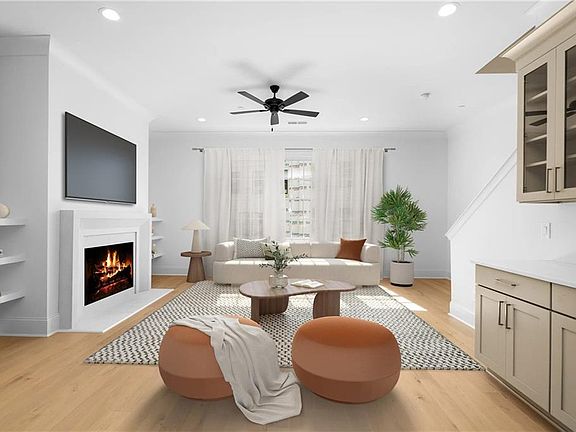 The release of two additional townhomes at Mayfair on Main creates a rare opportunity for two end-unit townhomes. This elegant four-story home is crowned by a rooftop terrace with a fireplace and sunset views towards the west over Wills Park. The New Park Lane floor plan offers over 2,849 square feet of masterfully curated living space, designed for those with the most refined tastes. With 3 bedrooms, 3 full baths, 2 half baths, and four expansive levels, this residence redefines luxury living through its perfect balance of form and function. An elevator connects each level seamlessly, from the elegant open-concept main living area to the showstopping top floor with an optional bar and rooftop terrace with fireplace—a private sanctuary ideal for alfresco entertaining beneath the stars. The terrace-level entertainment lounge, another great spot for a bar (optional feature), ensures every gathering is unforgettable, while the spacious primary suite offers a private retreat with spa-inspired bathroom and walk-in closet with a custom closet system. Bespoke and customizable finishes, classic architecture, multiple outdoor spaces, and direct access to the Alpha Loop just steps outside your front door create a home unlike any other in Alpharetta. At Mayfair on Main, lifestyle extends far beyond your doorstep: stroll to the boutiques and fine dining of Downtown Alpharetta, explore The Maxwell just across the street, or connect effortlessly to Avalon. This is the marriage of Downtown Alpharetta walkability and convenience, and a luxury home. FOR A LIMITED TIME, THE BUILDER IS OFFERING "$25K YOUR WAY" TO BE USED TOWARDS CLOSING COSTS, UPGRADES, OR A RATE BUYDOWN.