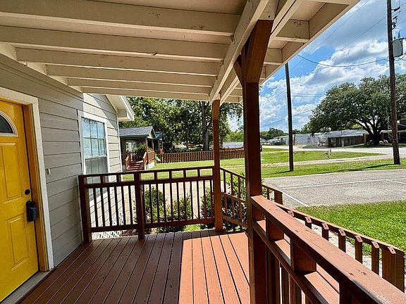 Upgrade from apartment living & give yourself some space with this quaint home in Old Tomball near Market Square! No more neighbors above or below you and completely remodeled/updated from top to bottom. Welcoming front porch large enough to sit outside and enjoy this quiet street. Open concept kitchen with gorgeous subway tiles, quartz counters and vinyl floors in kitchen and living room. Lots of natural light throughout! Two bedrooms with carpet and 2 full bath with large utility space on back of house. Neutral pallet. Large fenced in backyard provides plenty of space to entertain or relax. Long single driveway so never have to fight for a spot or pay extra for parking. Room sizes are approximate. Bring your refrigerator, washer and dryer. If you don't have a washer/dryer there is a laundromat less than 5 min down the road.