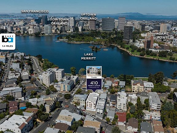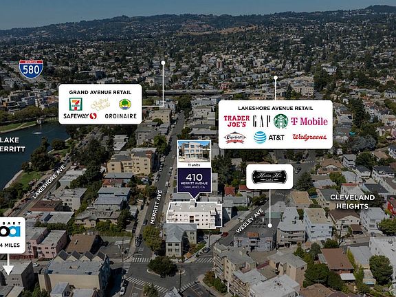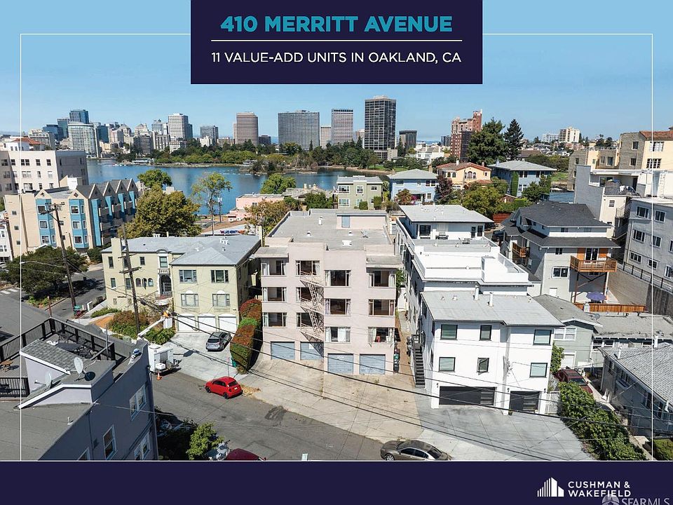 We are pleased to offer for sale 410 Merritt Avenue, an 11-unit multifamily investment opportunity in Oakland's highly desirable Cleveland Heights neighborhood. The property is ideally suited for a value-add strategy, combining strong in-place fundamentals with meaningful near-term potential to drive rental income growth. The unit mix is both spacious and efficient, featuring three 2-bedroom units averaging 945 sf, seven 1-bedroom units averaging 711 sf, and one 320 sf studio. Each 1- and 2-bedroom unit includes a dining nook that can be converted into an additional bedroom through a cost-effective process, creating the opportunity to increase density and further enhance revenue. The property also features 8 single-car garages with room to park an additional vehicle in front of each garage. Upon stabilization, the property is projected to achieve an attractive 8.83% cap rate, highlighting the compelling investment returns available to an active operator. The building was constructed with a concrete podium that exempts it from Oakland's mandatory soft story retrofit program, reducing exposure to costly seismic upgrades.