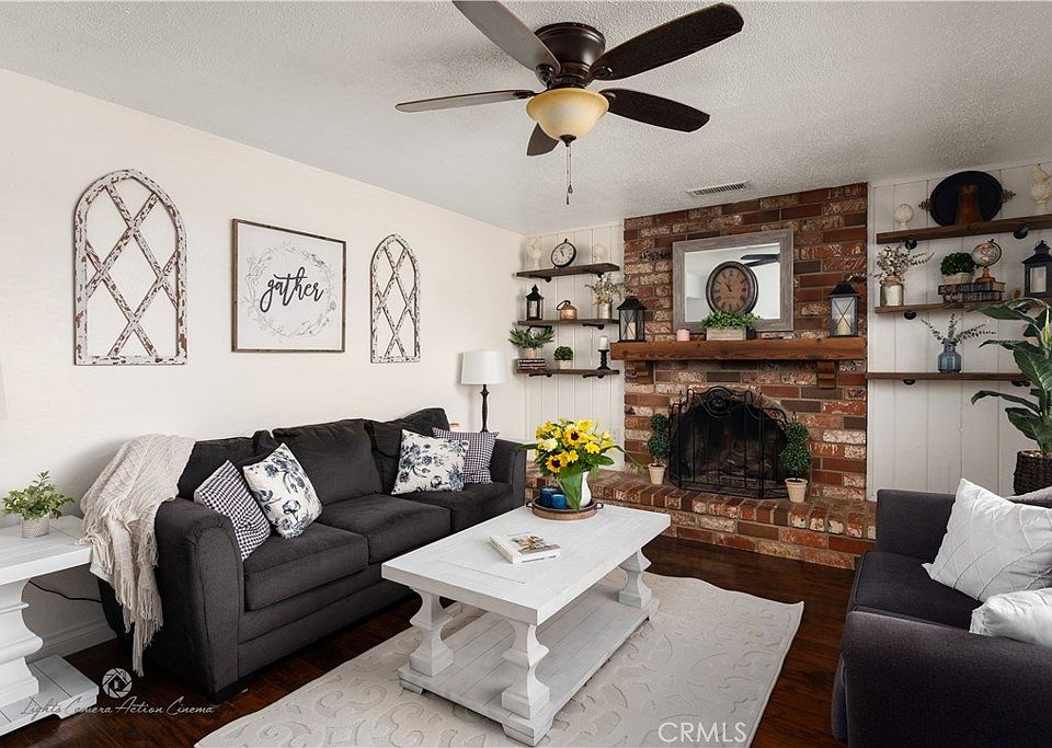 Tucked away in the Ojai valley, your private oasis awaits. Situated in a cul-de-sac, this home offers seamless indoor/outdoor living space encompassing sweeping views. The interior design provides a sense of style & elegance with features like; dark wood like laminate flooring, stainless steel appliances, travertine countertops, cozy indoor fireplace and a backyard for entertaining your guest. Three bedrooms with a grand primary suite leading you to the backyard. The sliders from the kitchen open up to your outdoor kitchen area which includes; BBQ, sink, 4 stove top burner, refrigerator, and fireplace for the chilly evenings. RV parking, and large side yard with plenty of storage for your tools. The stairs in the back lead to a area with lined with fruit trees. Plenty of space to build a pool, add a garden, and there is also backyard access to the walking/bike trails.