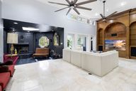 Outdoor kitchenPebble rock saltwater poolGolf course viewsResort-style backyardOpen floor planStately curb appealMultiple seating areas