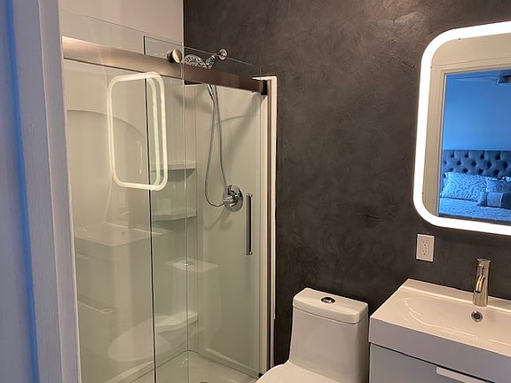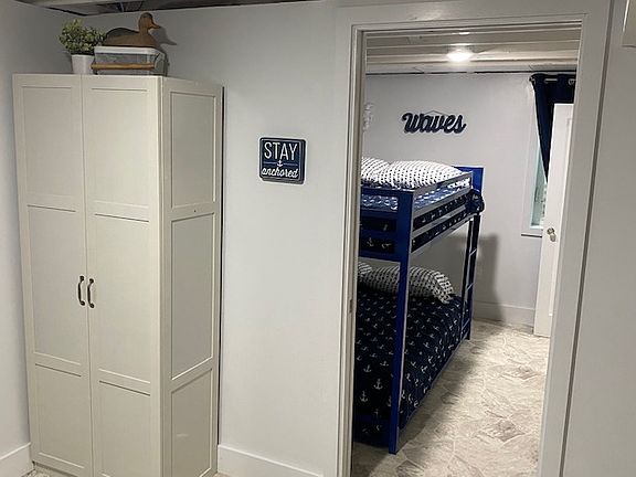 This furnished vacation rental is available for month-to-month lease September through May, around short-term bookings that may or may not already be booked in the off-season. Enjoy close walking access to the lake, City Park, and the Surf Ballroom at this newly remodeled, centrally-located getaway with 3 bedrooms and two bathrooms. The basement bathroom has two sink areas with plenty of counter space.