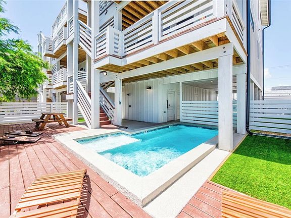 Perfect in town location for a 3 story townhome style free standing home with a rooftop deck that allows you to see the city, the ship channel and the ocean. This fully furnished beauty comes with its own private pool, putting green, barbecue area and is so close to the action. Walk or golf cart over to the sip yard, the ice cream parlor, restaurants and the beach! Plenty of parking and great set up for vacation rentals. This home has a proven track record. Even during a slower year it still grossed almost 130K. Great investment and second home. One car garage is good place to store your golf cart. There is an in-law, nanny suite on the first floor area making it nice for privacy. Second floor has a spacious living room with dining combination and an upscale contemporary kitchen. The main bedroom is also on this floor with private access to the rear deck. Upstairs there is another living area equipped with a pacman for the kids or quests and 2 additional bedrooms that also have a small front balcony. The rooftop balcony however is the Piece de resistance with its amazing 360 degree views. The deck off the main living area is set up so outside grilling and eating are where its at. Old town has become quite desirable and there are only so many places that still allow STR especially one this size. This is something you need to consider and call your favorite realtor today before it is gone.