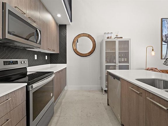 Fall in love with this NYC-style loft with an ultra-low $260/mo HOA. Built in 2020, this spacious 2-bed, 1-bath condo delivers modern design. An elegant European kitchen showcases an oversized island, quartz counters, soft-close cabinetry, & stainless steel appliances. Soaring 18-ft ceilings & large impact windows drench the space in natural light. Polished concrete floors & durable vinyl in the loft keep things sleek & low-maintenance. Flexible loft bedroom is ideal for guests, office, studio. Location is unbeatable, URBN Village is Fannie Mae Approved, so only 3% down required! Enjoy resort-style appeal with an inviting pool area. Surrounded by parks & minutes to Wilton Manors, Federal Hwy, the Beach, and the Culinary Arts District. Don't miss this amazing condo!