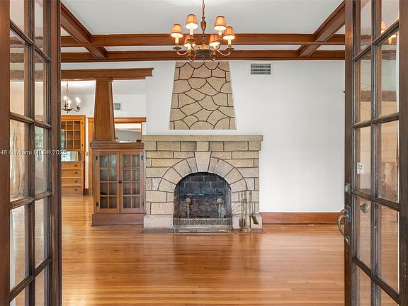 The Frank Austin House, built in 1924, is a historically significant Craftsman style Bungalow that captures the timeless character of Old Florida. Set on nearly half an acre, this home offers an abundance of space & privacy. The prominent front porch opens up to a grand living area framed with a coquina stone fireplace, wood beam ceilings and refinished red oak floors. With 4 bedrooms, 2 bathrooms, an office, and a two-car carport, this residence blends a rich architectural heritage and original details with everyday comfort. Relax in the oversized private back yard with mature landscaping, serene koi pond and multiple outdoor seating areas. Set in a prime old Pompano Beach location with convenient access to the beach, dining & major highways.